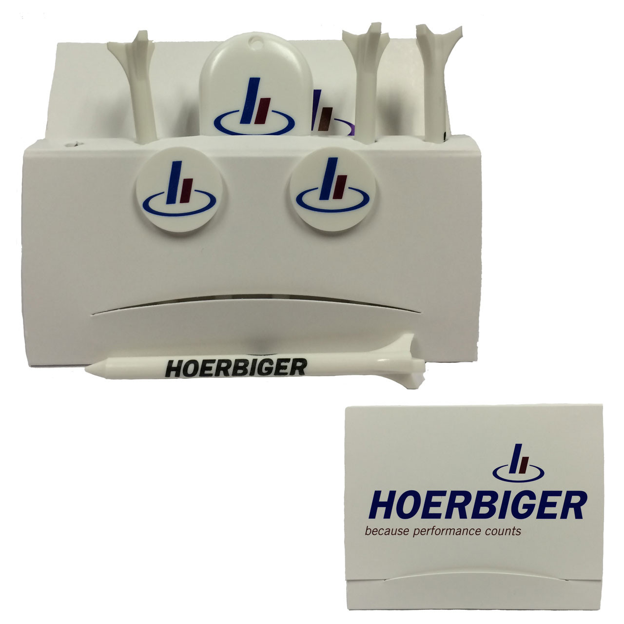 Golf Matchbook Packet includes 4 2.75" Zero Friction golf tees, 2 ball markers and 1 divot fixer tool. All items imprinted.