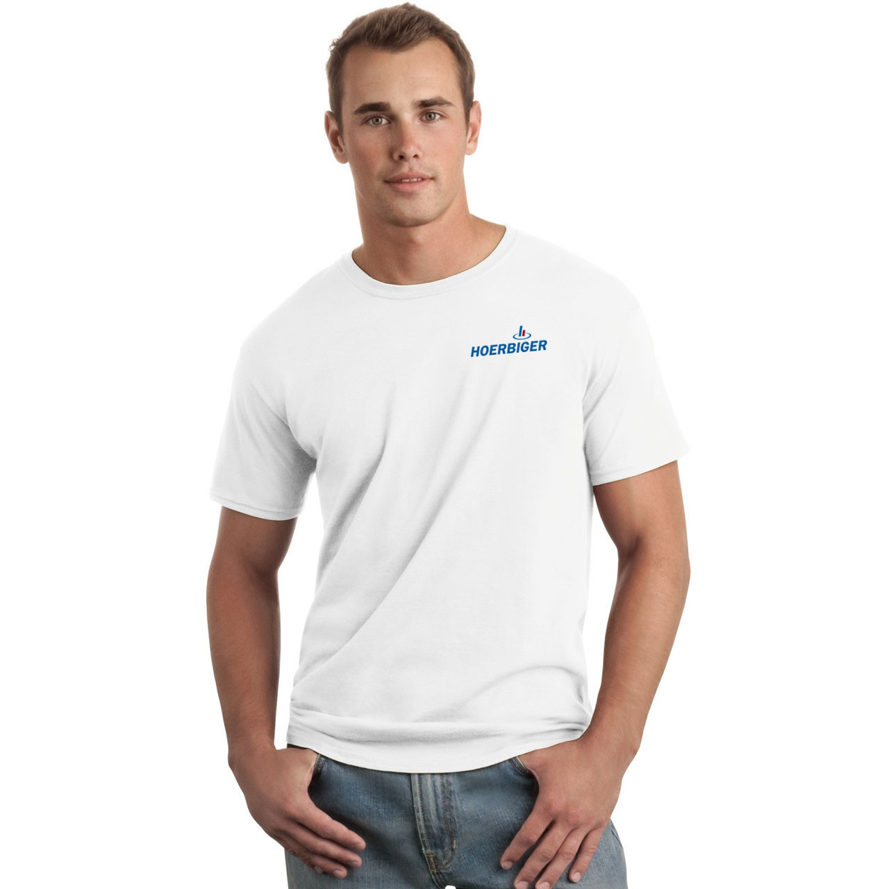 6.1 oz., 100% preshrunk cotton. Seamless collar. Double-needle stitched.